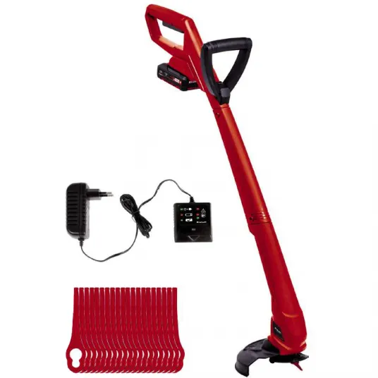 Trimmer-ul fara fir pentru iarba Einhell GC-CT 18/24 Li P (1x1.5Ah) scurteaza timpul de ingrijire a marginilor de gazon, a fasiilor de iarba si a colturilor dificile din curte si gradina - fara fir si fara restrictie de miscare. Trimmer-ul fara fir pentru iarba este membru al familiei Power X-Change, astfel incat acumulatorul se poate folosi cu oricare dintre aparatele din seria Power X-Change. Bateria inclusa ii permite utilizatorului sa lucreze complet independent o perioada de pana la 40 de minute. A fost prevazut un indicator de incarcare a bateriei, cu trei leduri, pentru ca utilizatorul sa poata vedea permanent dintr-o privire starea de incarcare. Datorita manerului suplimentar, trimmer-ul de iarba poate fi utilizat comod cu ambele maini. Carcasa si manerul suplimentar au fost concepute cu accent deosebit pe durabilitate, pentru ca sunt facute din plastic de calitate superioara, rezistent la socuri. Cu o turatie de 8,500 rpm, trimmer-ul fara fir pentru iarba este o unealta puternica cu o latime de taiere de pana la 24 centimetri. Produsul se livreaza cu 20 de lame din plastic, cu o baterie litiu-ion de 18 V / 1.5 Ah si cu un incarcator care reincarca bateria in doua ore.