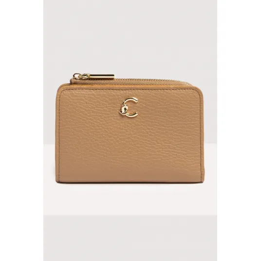 COCCINELLE, Portofel din piele cu logo C-Me, Auriu, Bej