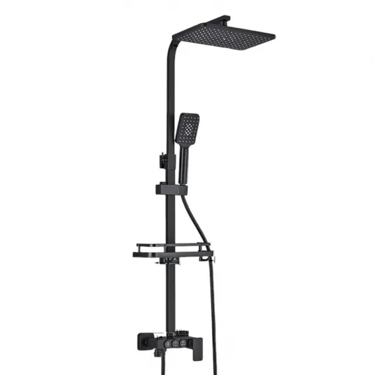 Coloana de Dus Baie, Reglabila pe Inaltime, Finisaj Negru Mat, Para Dus 30 cm cu efect ploaie, 3 Functii de Curgere