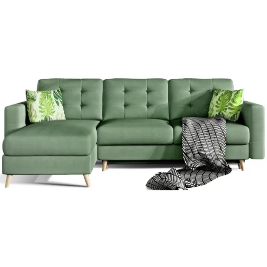 Asgard L este o canapea coltar eleganta, atmosferica si spatioasa, cu dimensiunile 248 x 162 x 93 cm, in stil retro. Datorita sezutului moale si confortabil, umplut cu arc ondulat si spuma T30, este perfecta pentru relaxare in timpul zilei si pentru odihna pe timp de Nuapte. Functia de dormit, cu dimensiunile 120 x 210 cm, este facilitata de un mecanism de extensie DL. Modelul Asgard L dispune, de asemenea, de un spatiu de depozitare generos pentru lenjeria de pat. Printre caracteristicile sale estetice se numara cusaturile elegante si cusaturile fine pe laterale si pe spatarul coltarului. In plus, se remarca si picioarele inalte, din lemn, profilatul tapitat, spatarul conturat corespunzator si bratele inalte. Acest coltar spatios Asgard L este destinat interiorului elegant si stilat. Cu o astfel de piesa de mobilier, cu siguranta veti aduce o Nuta considerabila de lux pentru revigorarea interiorului casei dumneavoastra.