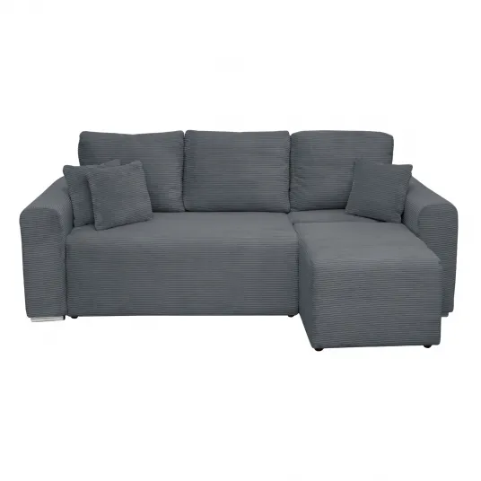 Coltar Canapea BEGA extensibil, cu arcuri si lada depozitare, colt interschimbabil, gri inchis, 240x153x80 cm