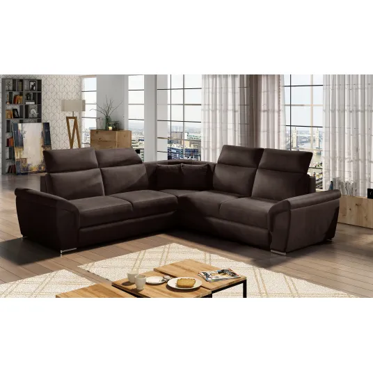 Coltar Federico, Intunecat BrunFederico este un decor clasic simetric, dar expresiv si functional al camerei de zi. Forma simpla a fost rupta cu elemente moderne sub forma de cotiere largi, inclinate, spatare inalte echipate cu patru tetiere reglabile si perne decorative. Dimensiunile Coltarului de 268 x 268 x 102 cm ofera mult spatiu pentru relaxare la orice ora din zi sau din Nuapte. Aceasta piesa de mobilier este echipata cu o functie de dormit cu o suprafata de 120 x 200 cm, precum si un depozit capabil si profund pentru asternutul plasat in otoman. Datorita functiei de desfasurare a delfinilor, adaptarea mobilierului la nevoile dvs. actuale este intuitiva si convenabila. Scaunul mobilierului este realizat din arc ondulat si spuma T30 - aceasta combinatie ofera moale, flexibilitate si suport adecvat pentru corp in timp ce se odihneste. Coltar Federico este alegerea potrivita pentru orice living in care ordinea, versatilitatea si in acelasi timp finisajul elegant al elementelor individuale conteaza. Va garantam ca Federico va indeplini toate cerintele dumneavoastra.223584998223584998