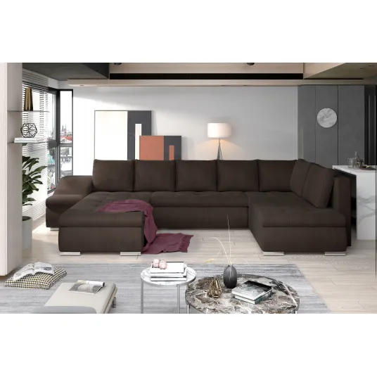 Coltar Giovanni, Maro inchisGiovanni este un Coltar al viitorului in forma de U exceptional de sic, elaborat si iNuvator, cu dimensiuni de 340 x 200 x 88 cm. Aceasta piesa de mobilier are un scaun confortabil, moale, realizat din arc ondulat durabil, precum si spuma flexibila T30, care este rezistenta nu numai la deteriorare, ci si la distorsiuni si zgarieturi de toate tipurile. Designul clasic modern este echipat cu un element lateral suplimentar care actioneaza ca o cotiera spatioasa, care poate fi folosita si ca scaun suplimentar. Coltarul Nustru este echipat cu o functie de dormit cu o suprafata de 295 x 120 cm, precum si un recipient pentru asternut. Caracteristicile caracteristice ale canapelei de colt Giovanni includ: marginile rotunjite ale Coltarului, care ii adauga eleganta, picioarele metalice argintii, o cotiera larga, ondulata, care se incadreaza, matlasarea eleganta pe scaune, precum si pernele spatioase. Alegand Coltarul Nustru, care nu este doar atractiv din punct de vedere vizual, ci si functional, veti gasi cu siguranta tot ce aveti nevoie pentru a obtine satisfactia maxima rezultata din confortul pe care il oferim.223585146223585146