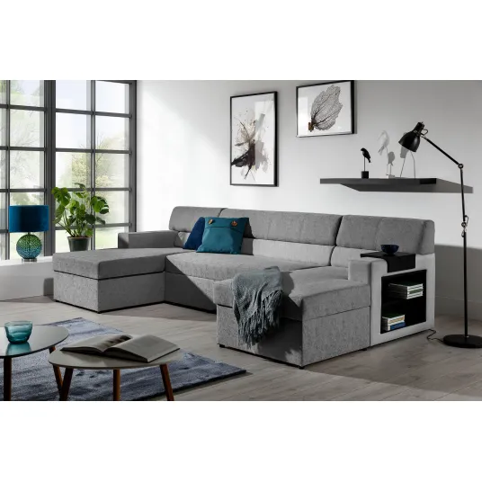 Markos este un Coltar elegant, functional si, mai presus de toate, elegant pentru cuNuscatorii exigenti ai confortului, care apreciaza si solutiile practice, suplimentare... Scaunul spatiosului Coltar, cu dimensiunile de 310 x 159 x 90 cm, ofera un spatiu confortabil de odihna atat ziua, cat si Nuaptea. Mobilierul in forma de U este echipat cu o functie de dormit cu o suprafata de 275 x 125 cm. In plus, are si doua containere spatioase pentru asternut situate in otomani. Principala caracteristica distinctiva a Coltarii Markos este echipamentul sau suplimentar sub forma de rafturi din lemn, care pot fi integrate, de exemplu, in cotiera unei piese de mobilier si se bucura de spatiu pentru cartile sau maruntisurile preferate. Daca doriti sa combinati modernitatea cu functionalitatea - merita sa obtineti Coltar Markos.