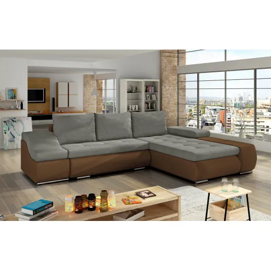 Ontario este un Coltar original, de bun gust si distinctiv, in stil loft, cu margini rotunjite, care aduce un suflu de prospetime camerei in care este amplasat. Mobilierul cu dimensiunile de 296 x 200 x 88 cm garanteaza un confort maxim atat pentru odihna pe timp de zi, cat si pentru relaxare pe timp de Nuapte, deoarece este dotat cu o functie de dormit cu o zona dedicata - 225 x 122 cm. Ontario are, de asemenea, depozit pentru lenjerie de pat. Alte facilitati includ un scaun confortabil realizat dintr-o combinatie de arc ondulat si spuma T30, o cotiera largita pe o parte (pe cealalta parte exista o cotiera mai scurta - ondulata), picioare decorative si perne spatioase. Coltar Ontario este o piesa de mobilier tapitata solida, de al carei confort, comoditate si functionalitate va puteti bucura multi ani.