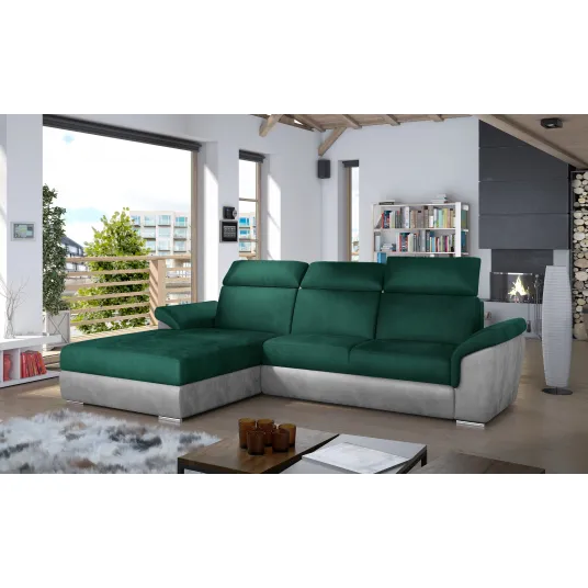 Coltar Trevisco, Verde inchisTrevisco este un Coltar confortabil si elegant, care impresioneaza pur si simplu - nu numai cu forma sa clasica, care completeaza finisajul modern al elementelor individuale, ci si cu un confort maxim, care poate fi experimentat pe o canapea cu dimensiunile de 272 x 216 x 100 cm. Coltar Trevisco va fi perfect ca piesa de mobilier pentru odihna in timpul zilei, dar poate fi folosit si ca loc de dormit. Tipul de pliere a delfinilor va permite sa schimbati rapid Coltara intr-un pat confortabil cu dimensiunile de 127 x 210 cm. Functionalitatea mobilierului este, de asemenea, imbunatatita de compartimentul de asternut spatios, care este situat in deschiderea otomana. Scaunul mobilierului este realizat din arc ondulat durabil si spuma flexibila T30, care garanteaza un efect unic de moliciune si flexibilitate. Trevisco este o piesa de mobilier care va va satisface toate asteptarile - de la admiratia pentru valorile estetice pana la confortul maxim disponibil la indemana.223589890223589890