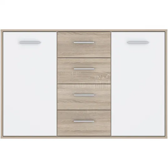 Comoda Forte Antuza, dimensiuni 122.6x 81.7x 34.2 cm, culoare stejar Sonoma/ alb, 2 usi, 4 sertare