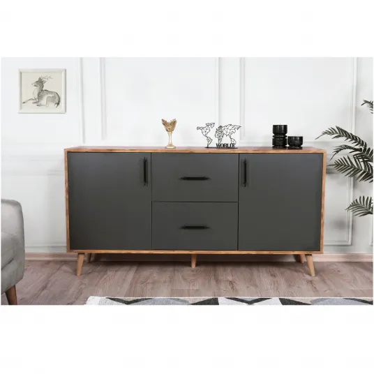 Comoda Kalune Design Colin, 2 sertare, PAL melaminat, 160x40x77xcm, Nuc/Antracit