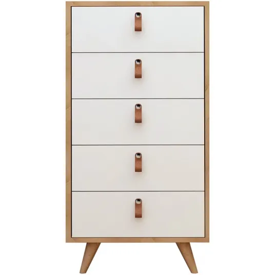 Comoda Kalune Design Denise nu exceleaza doar prin stil; ofera, de asemenea, functionalitati exceptionale pentru nevoile dvs. de stocare. Masurand 50x40x103cm, ofera mult spatiu pentru a va pastra lucrurile bine organizate. Cele cinci sertare spatioase ofera versatilitate, permitandu-va sa depozitati o gama larga de articole, inclusiv imbracaminte, accesorii, documente si multe altele.