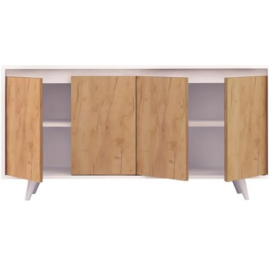 Fabricat din lemn melaminat PAL de inalta calitate, aceasta comoda este conceputa pentru a rezista testului timpului. Constructia sa robusta asigura durabilitate, in timp ce finisajul elegant din stejar adauga un ton natural si cald interiorului tau. Dimensiunile de 140x40x86cm ofera un spatiu substantial pentru organizarea bunurilor, facandu-l ideal pentru dormitoare, sufragerie sau chiar birouri.