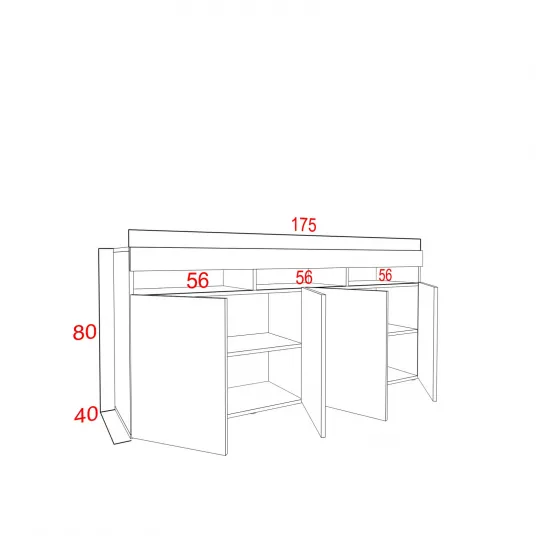 Comoda moderna cu 4 usi, usile negru lucios negru mat, 175x80x40cm, fara led, pentru living, hol, dormitor, birou, Bortis ImpexComoda cu 4 usi, din pal melaminat 16 mm grosime ,culoarea negru mat carcasa iar usile -partea din fata negru lucios ! Atentie !! Culoarea albastra din imagini este datorata unei benzi led , care nu este inclusa in pret ! Se poate achizitiona ulterior de catre client , separat . Spatioasa si rezistenta ! Canturi abs , feronerie de calitate ! Lungime 175 cm x 40 cm adancime x 80 cm inaltime . Ideala pentru orice tip de camera : hol,living ,dormitor sau birou . Vedeti in poze dimensiunile exacte ! Se livreaza neasamblata , in colete ! Coletele contin tot ce este necesar pentru asamblare (accesorii,kit de asamblare,schita de asamblare) . Usor de asamblat ! CARACTERISTICI GENERALE Tip produs Comoda Tip Usi cu balamale Cu rafturi Numar usi 4 Numar rafturi 4 Greutate maxima suportata 200 Kg Continut pachet 1 Comoda Produsul se livreaza demontat si este insotit de schita de montaj. 1 x Accesorii pentru montare Finisaj Mat Lacuit Laminat Melaminat Culoare Negru Negru lucios DETALII MATERIAL Tip fronturi PAL Material PAL Melamina DIMENSIUNI Lungime 175 cm Latime 40 cm Inaltime 80 cm Grosime 16 mm 1.6 cm222858802222858802
