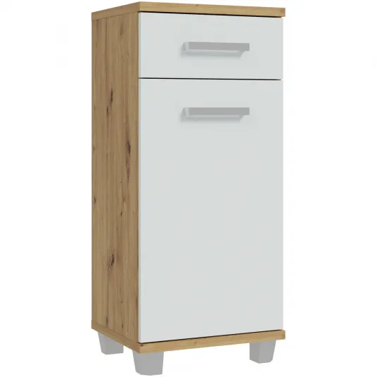 Comoda practica pentru baie este o completare excelenta a intregii colectii VERIS si ofera mai mult spatiu de depozitare. Silueta sa simpla si combinatia la moda a doua decoruri: Artisan Oak si Secret Grey, adauga mai mult stil baii dumneavoastra. Comoda VERIS dispune de un sertar si un dulap inchis.
