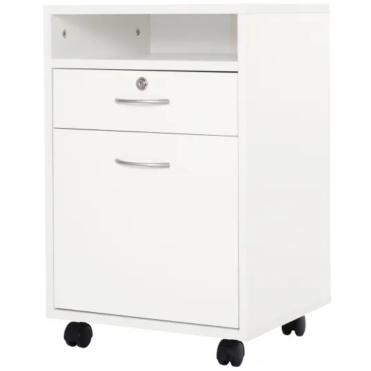 Comoda pentru birou cu roti Homcom, Cu sertar, PAL, 40x35x60cm, Alb