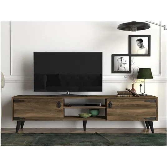 Comoda TV Kalune Design Clover PAL este realizat cu atentie pentru a asigura atat durabilitate, cat si atractivitate estetica. Fabricat din materiale de inalta calitate, ofera o baza solida si de lunga durata pentru accesoriile TV si audiovizuale. Finisajul elegant NucNegru adauga o nota sofisticata oricarei incaperi, ridicand atmosfera generala a spatiului tau de locuit.