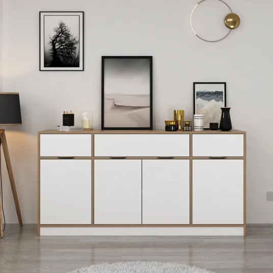 Cu o latime de 180 cm, o inaltime de 90 cm si o adancime de 45 cm, aceasta consola ofera un spatiu amplu de depozitare pentru toate bunurile dvs. Fie ca o folositi in camera de zi, in hol sau in dormitor, aceasta va adauga atat functionalitate, cat si stil spatiului dvs.