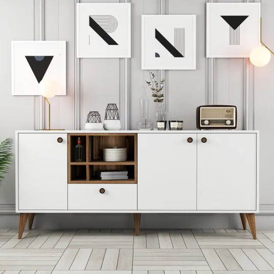 Cu designul sau elegant si liniile sale curate, consola noastra este un accesoriu perfect pentru orice casa moderna sau contemporana. Culoarea (culorile) alba (albe) a produsului adauga un sentiment de sofisticare si versatilitate, integrandu-se fara efort in orice decor existent. Fie ca o asezati in camera de zi, pe hol sau chiar in dormitor, aceasta consola va deveni instantaneu punctul focal al camerei, facand o declaratie indrazneata.