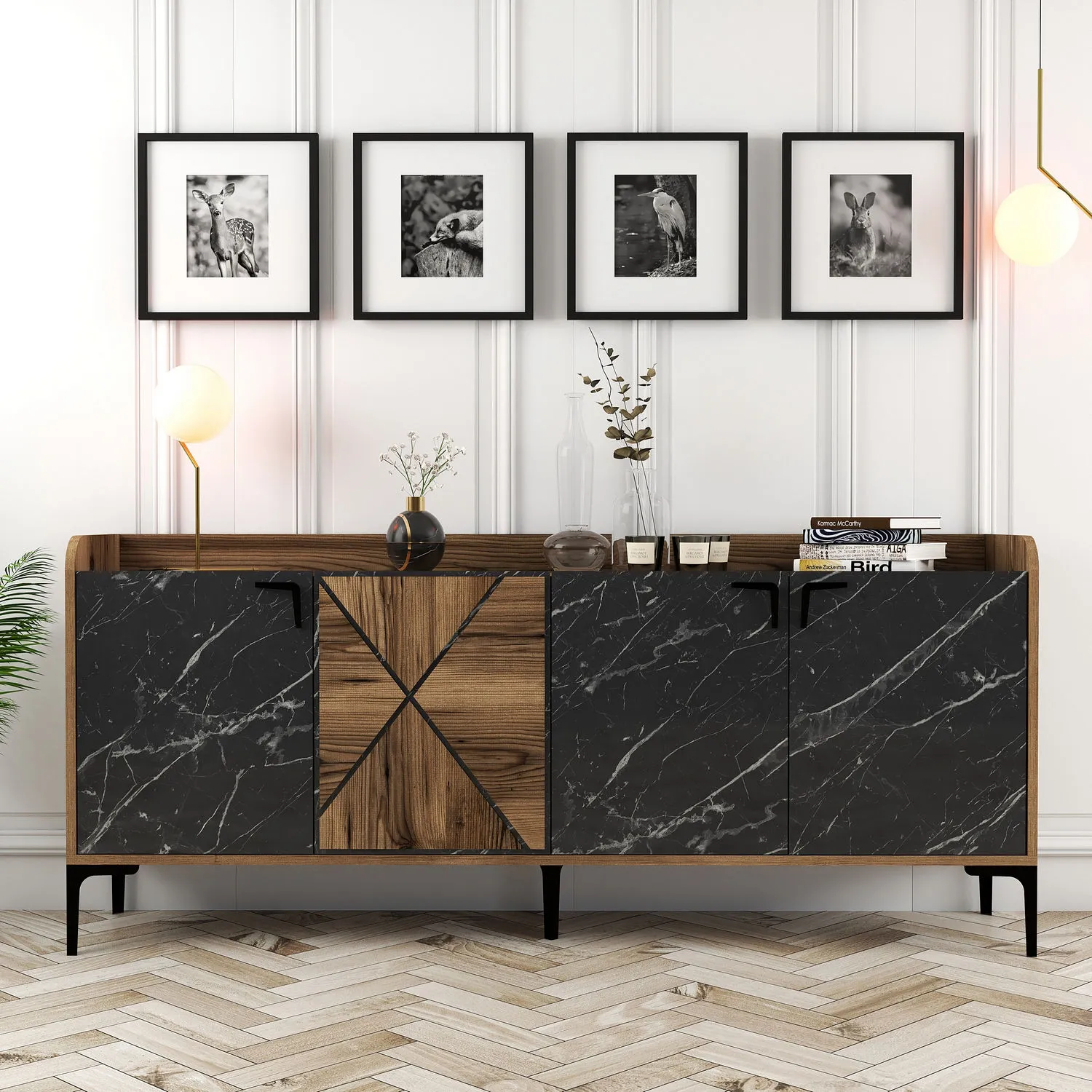 Consola Venedik - Nuc, Marmura Neagra 180 x 78 x 35 cm
