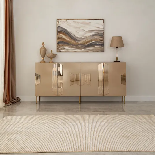 Cu o latime de 180 cm, o inaltime de 80 cm si o adancime de 40 cm, aceasta consola este conceputa pentru a se potrivi perfect in orice spatiu. Fie ca este amplasata intr-un hol grandios sau intr-o camera de zi confortabila, se va integra fara efort si va deveni punctul central al camerei.