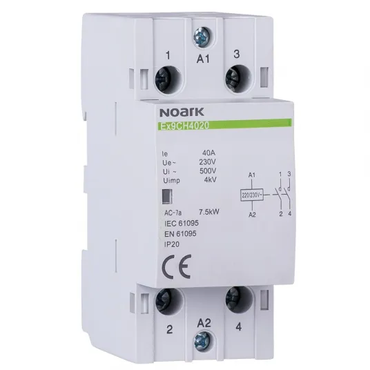 Contactor de instalare Noark 102416, 40 A, 220/230 V, 2 module