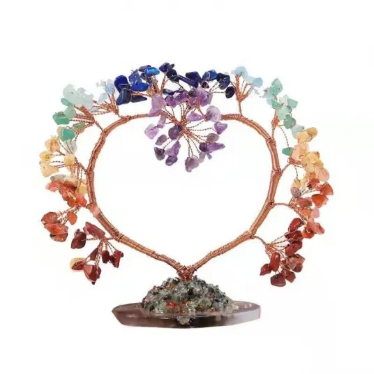 Copac pietre semipretioase 7 chakra, in Forma de Inima, Decor cristal feng shui, accesorii premium pentru birou, Realizat manual, sundiguer, Multicolor