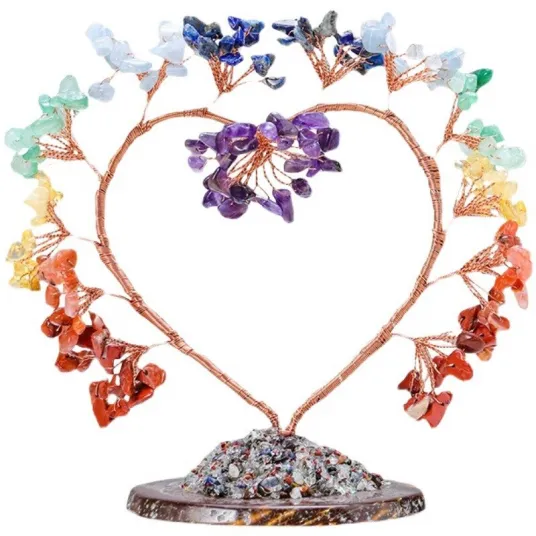 Copac pietre semipretioase 7 chakra in forma de inima – Decor cristal feng shui, XGETOP®accesorii premium pentru birou