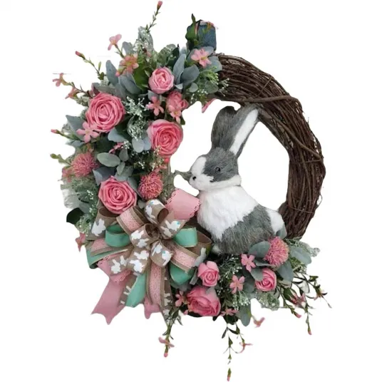 Corona de Paste YISYNIM, decor iepuras, multicolor, 35x35cm