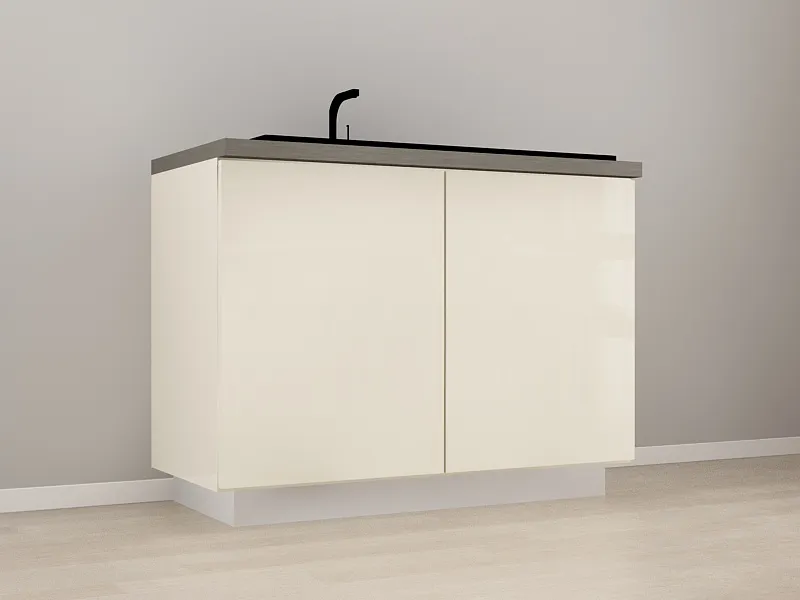 Corp Inferior 120 cu 2 Usi pentru Chiuveta MDF Crem Lucios - Blanca | Modul de Bucatarie Premium Configurabil - Hulgo Mobili