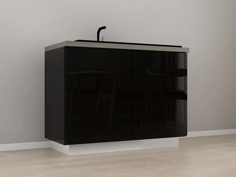 Corp Inferior 120 cu 2 Usi pentru Chiuveta MDF Negru Lucios - Blanca | Modul de Bucatarie Premium Configurabil - Hulgo Mobili