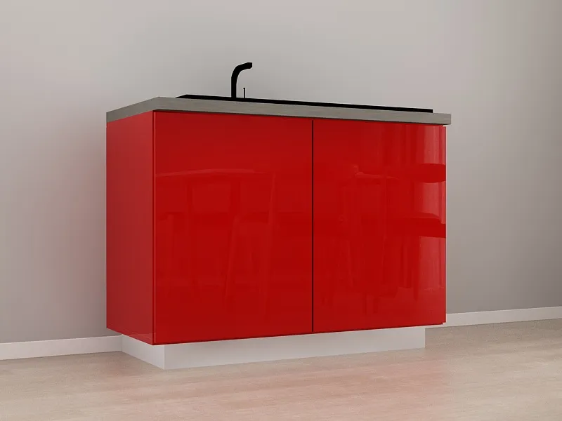 Corp Inferior 120 cu 2 Usi pentru Chiuveta MDF Rosu Lucios - Blanca | Modul de Bucatarie Premium Configurabil - Hulgo Mobili
