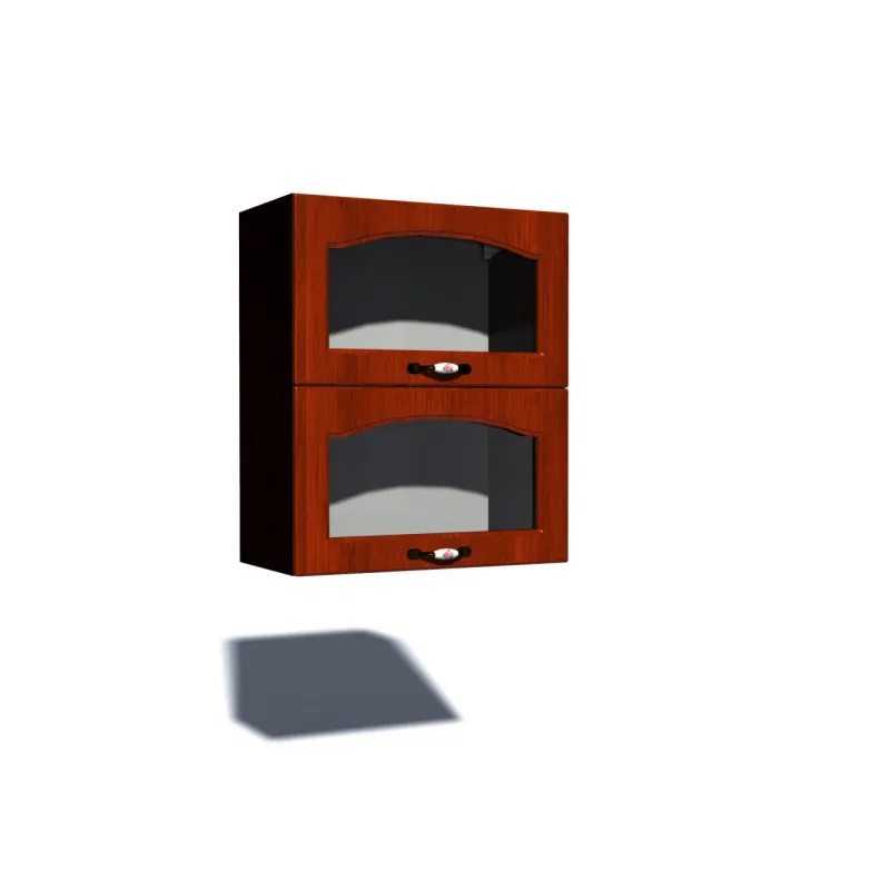 Materiale folosite:Pal melaminat,usi din MDF infoliat, manere metalice cu insertie portelan, balamale metal, pistoane cu aer, sticla.