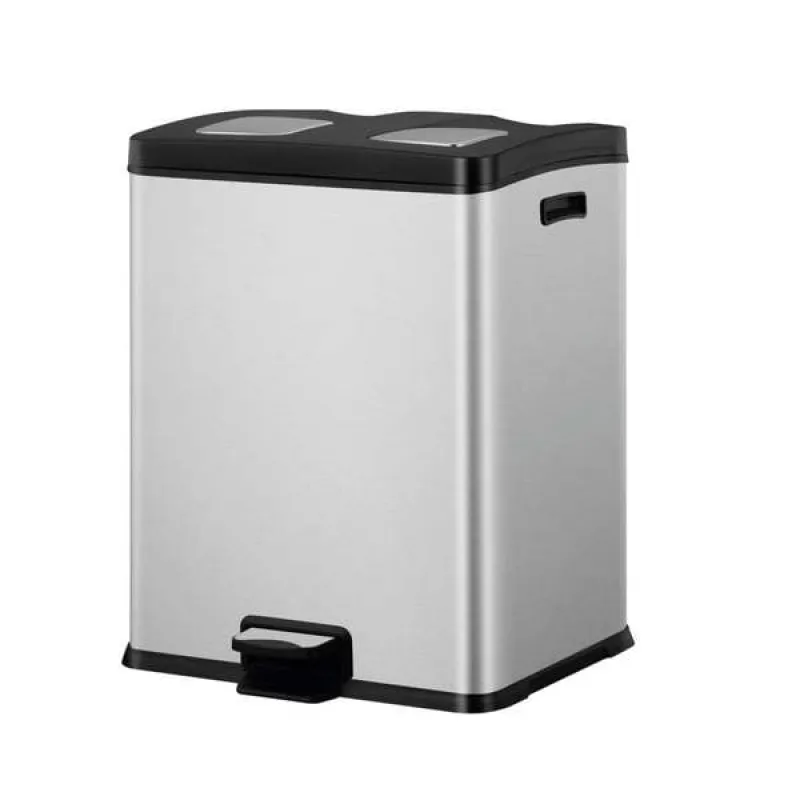 Cos de gunoi cu pedala EKO, Rejoice, 923860, capacitate 30/30 litri, 2 compartimente, inchidere silentioasa a capacului, corp din otel inoxidabil, rezistent la amprente, inox