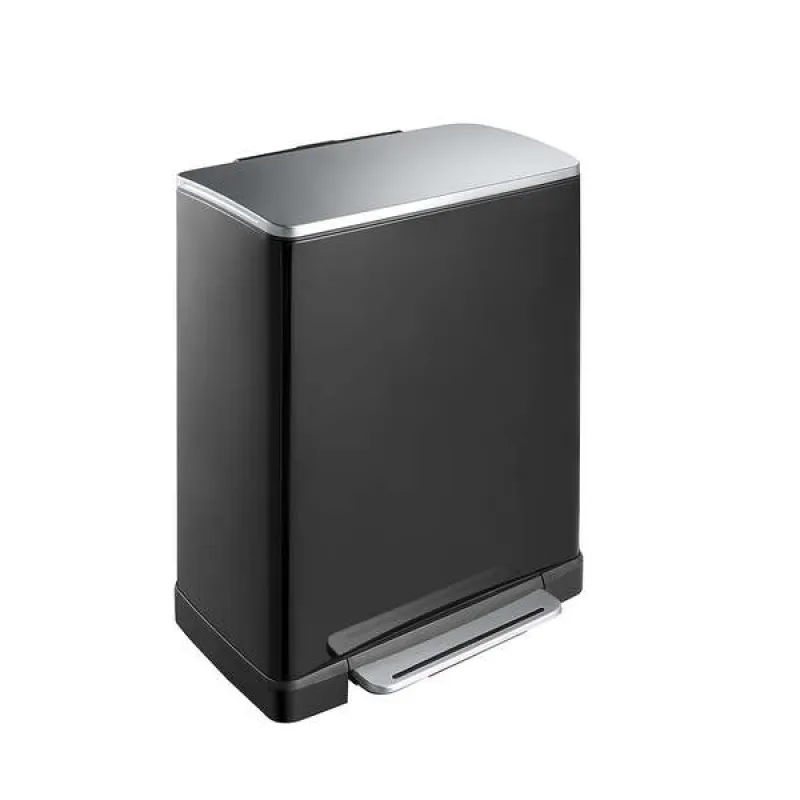 Cos de gunoi EKO, E-Cube, 926848, cu pedala, 2 compartimente 28/18 L, deschidere/inchidere silentioasa a capacului, corp din otel inoxidabil, rezistent la amprente, negru