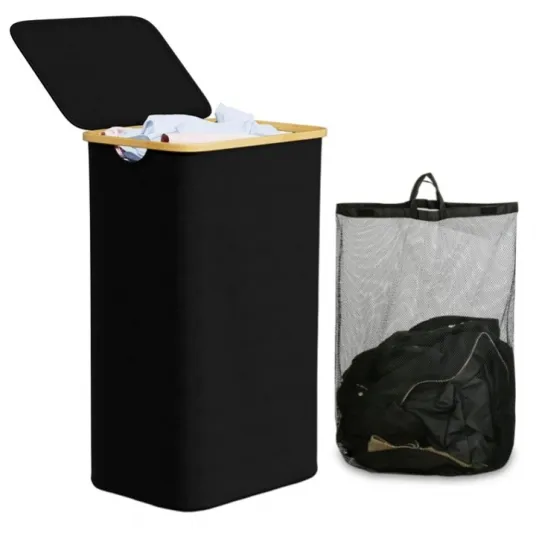 Cos de Rufe pentru Acasa din Bambus si Tesatura, Pliabil, cu Capac si Sac de Rufe Detasabil, Bambus si Material Textil, negruCos de Rufe pentru Acasa din Bambus si Tesatura, Pliabil, cu Capac si Sac de Rufe Detasabil, Bambus si Material Textil, negru223608252223608252