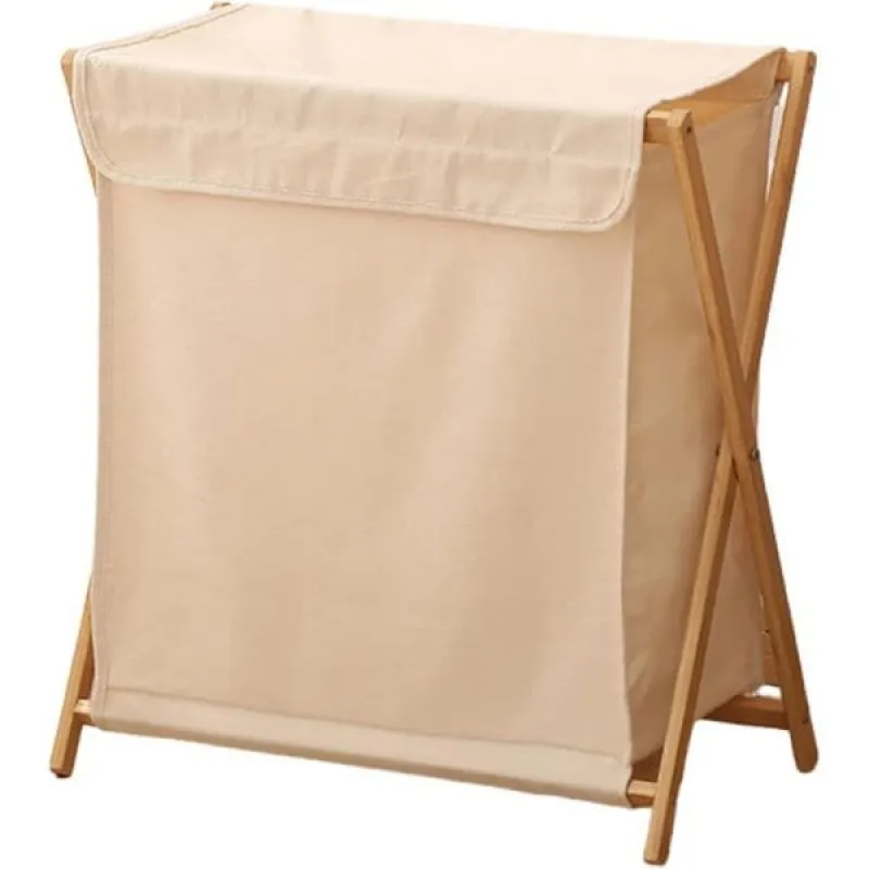 Cos de rufe, Quasar & Co., 1 compartimente si capac, pliabil, textil/bambus, 50 x 34 x 56.5 cm, bej