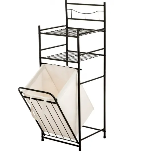 Cos de rufe, Quasar & Co.®, cu 2 polite, raft organizator baie, 38 x 35.5 x 105 cm, metal, gri