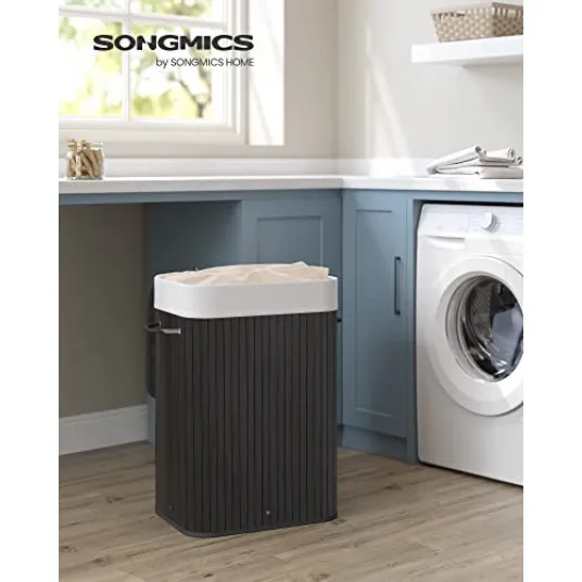 Cos de rufe, Songmics, Negru, 40x30x60 cm[Cos de rufe cu capac] Capacul cosului poate fi deschis si inchis cu o singura mana pentru a va facilita depozitarea rufelor. Capacul previne mirosurile neplacute si va protejeaza rufele de praf<br><br>[Spatios si totusi economisitor de spatiu] Acest cos de rufe de 40 x 30 x 60 cm ofera o multime de spatiu de depozitare (72L) pentru prosoapele, hainele si lenjeria de pat. Datorita siluetei sale subtiri, ocupa putin spatiu pe podea<br><br>[Robust si pliabil] Fasiile de bambus cu latimea de 17 mm fac cosul de rufe foarte robust, stabil si rezistent (sarcina maxima de 20 kg). Atunci cand nu este utilizat, poate fi pliat si depozitat intr-un mod care economiseste spatiu<br><br>[Geanta detasabila si lavabila la masina] Geanta de captuseala realizata din tesatura de bumbac de 160 g/m² este detasabila, astfel incat o puteti lua cu usurinta in spalatorie. Cand se murdareste, pur si simplu se spala la masina<br><br>[Usor de asamblat, usor de transportat] Datorita structurii simple si a instructiunilor usor de urmat, acest cos de rufe poate fi asamblat in cel mai scurt timp. Cu manerele din bumbac de pe laterale, poate fi transportat cu usurinta224186822224186822