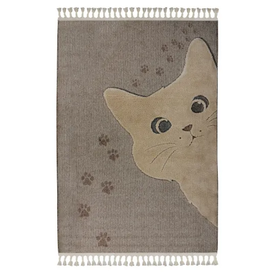 Modelul cu pisicuta vesela alb-negru aduce un strop de veselie si imaginatie in camera copilului. Suprafata cu reliefuri si alternanta de fire ridicate si joase creeaza un efect inalt-jos, care confera covorului un aspect dinamic si atractiv. Acest design in stil 3D stimuleaza imaginatia si face fiecare moment de joaca mai special.