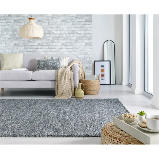Covor dreptunghiular Flair Rugs Minerals, 160 x 230 cm, 3000 g/m², 65% Lana, 35% Poliester, Gri inchis