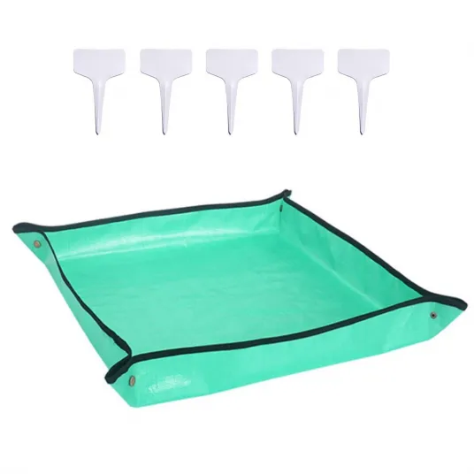 Covoras pentru gradinarit cu 5 etichete pentru plante, Koungiam, PE, 100x100cm, Verde