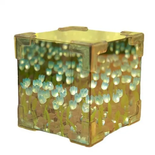 Cube tulip mirror lamp, tulip nightlight, Table lamp decoration Desktop furniture decoration,21 Tulips albastru