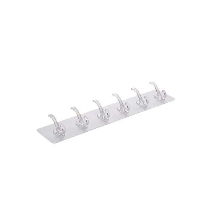 Cuier din silicon Hanger Stick, pentru baie, hol sau bucatarie, 6 pozitii, prindere cu adeziv, transparent, rezistent la umeazeala sau caldura, 30x6.5 cm, Doty®️