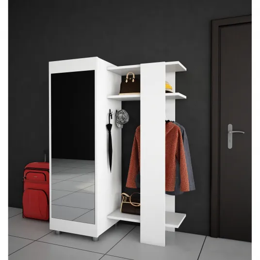 Cuier Kalune Design Tim, PAL melaminat, 105x47.2x185cm, AlbMobilier hol Antre Woody Fashion, 105 x 47.2 x 185 cm, PAL melaminat, alb