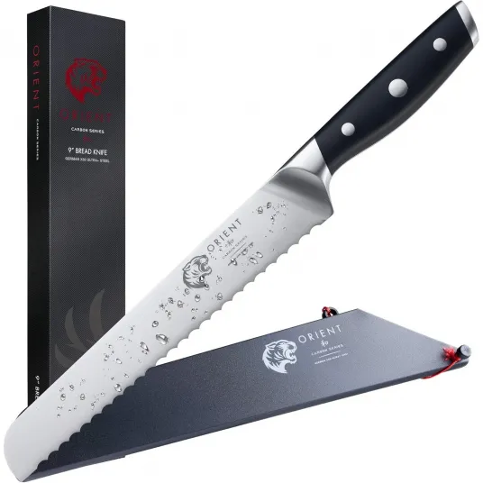 Cutit de bucatarie pentru paine, Orient, Carbon Series, otel inoxidabil german X50 Ultra+, negru