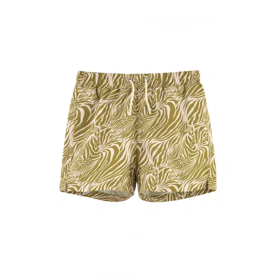 DAGI, Pantaloni scurti de baie cu snur in talie si model, Alb fildes, masline, 128 CM
