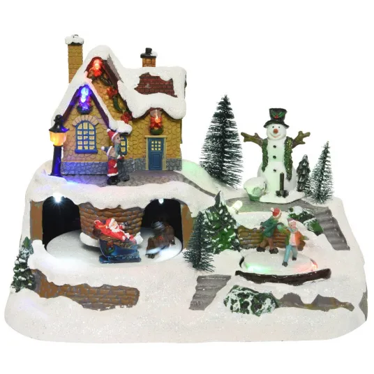 Decoratiune casa Craciun Lumineo, 14 LED-uri, 16x23.5x17 cm, lumina multicolora, animata, muzicala, interior, alimentare baterii