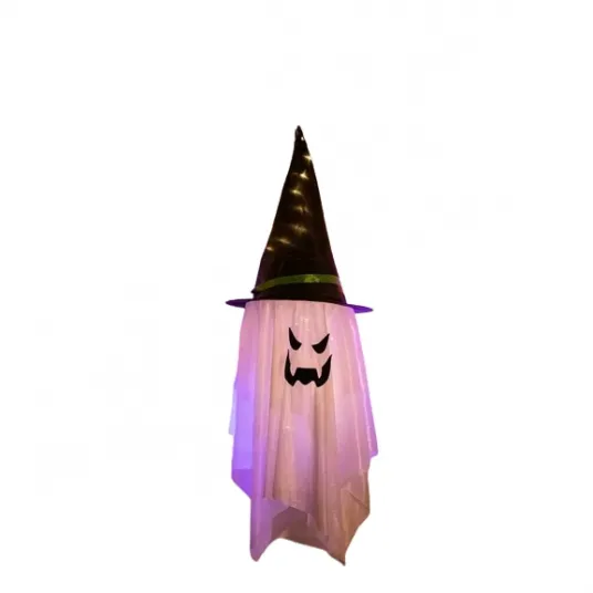Decoratiune Halloween, Palarie de Vrajitor cu Fata de Fantoma, Panza, Alb, 95cm