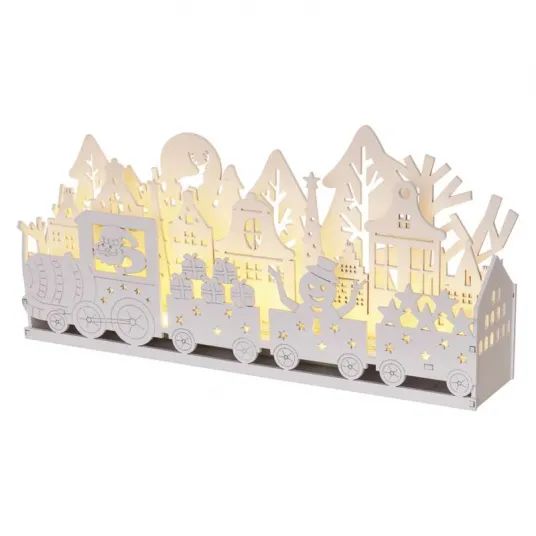 Decoratiuni LED din lemn, tren, Emos, alb cald, cu timer, 2XAA, DCWW19