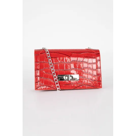 DeFacto, Geanta cu bareta de lant si model piele de reptila, Rosu vermillion