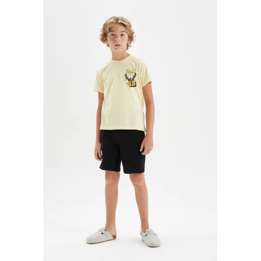 DeFacto, Pijama cu pantaloni scurti si imprimeu cu desene, Negru, Galben, 122-128 CMDeFacto, Pijama cu pantaloni scurti si imprimeu cu desene, Negru, Galben, 122-128 CM223500610223500610