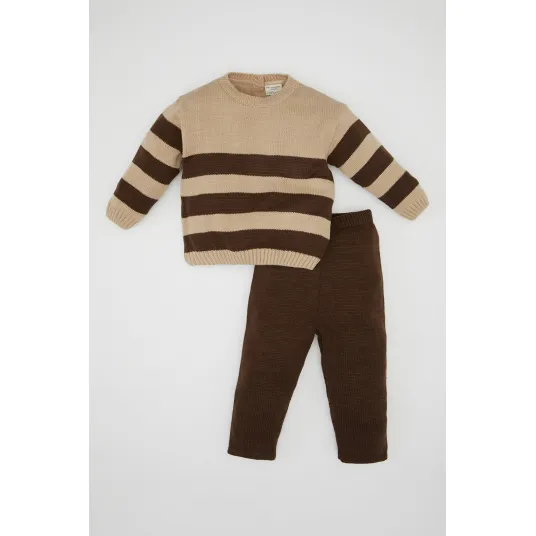 DeFacto, Set de pulover si pantaloni din tricot, Maro nisip, Maro fango, 68-74 CM